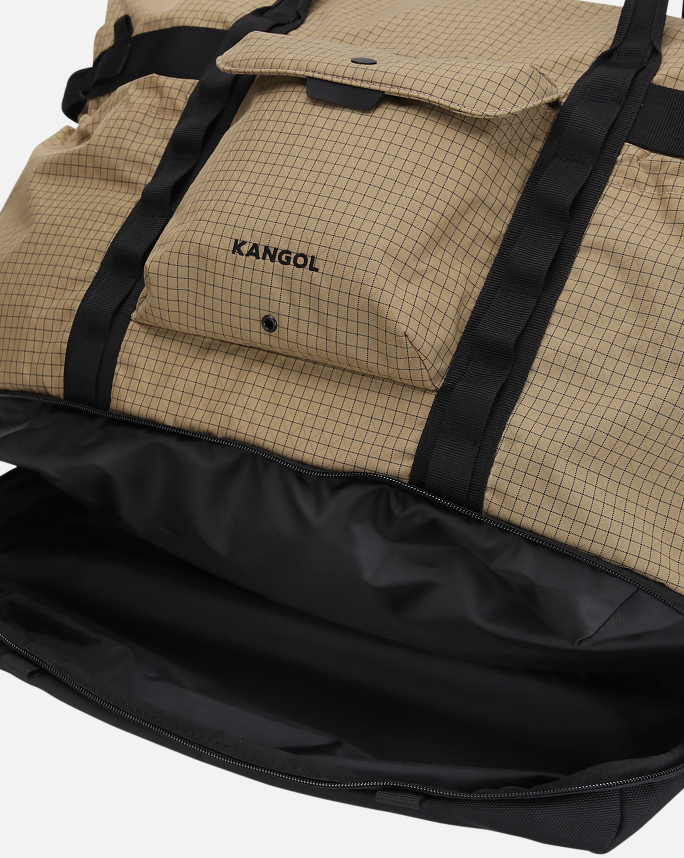 Large-sized tote bag made from ripstop nylon fabric - Offers durability and light water resistance. Features smooth and durable YKK nylon zippers and an embroidered wordmark logo on the front. Includes two detachable webbing straps allow you to secure small items to the front, back, or bottom of the bag as needed. Bottom zip pocket and multiple inner and outer compartments provide additional storage space.