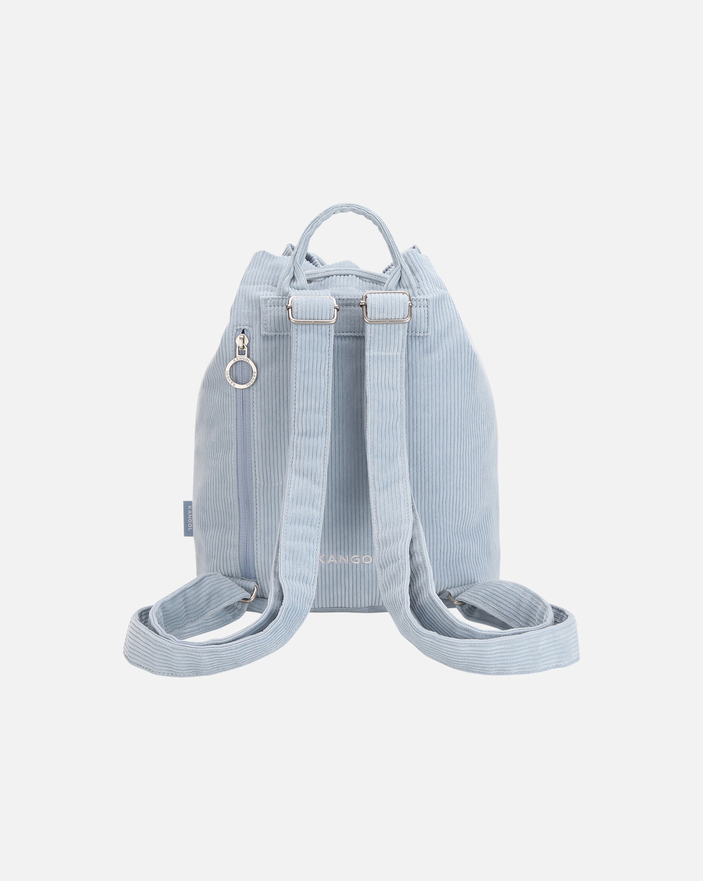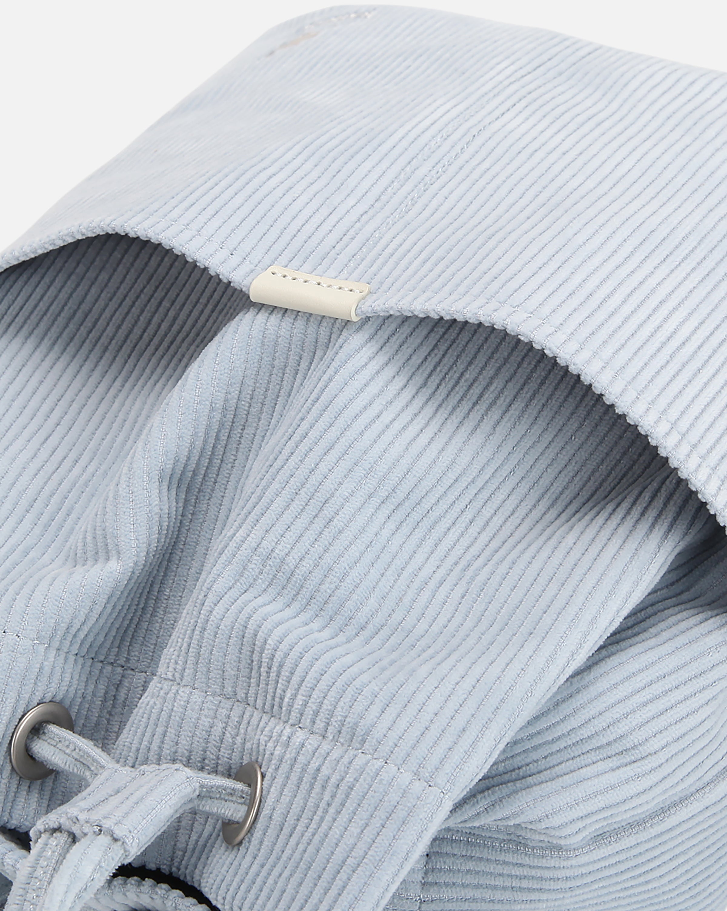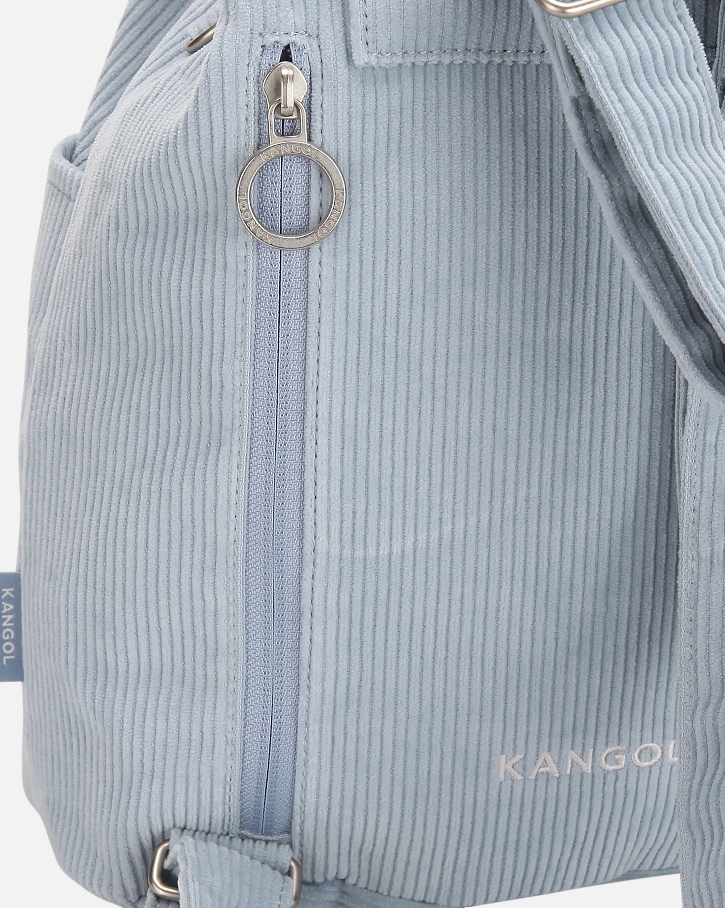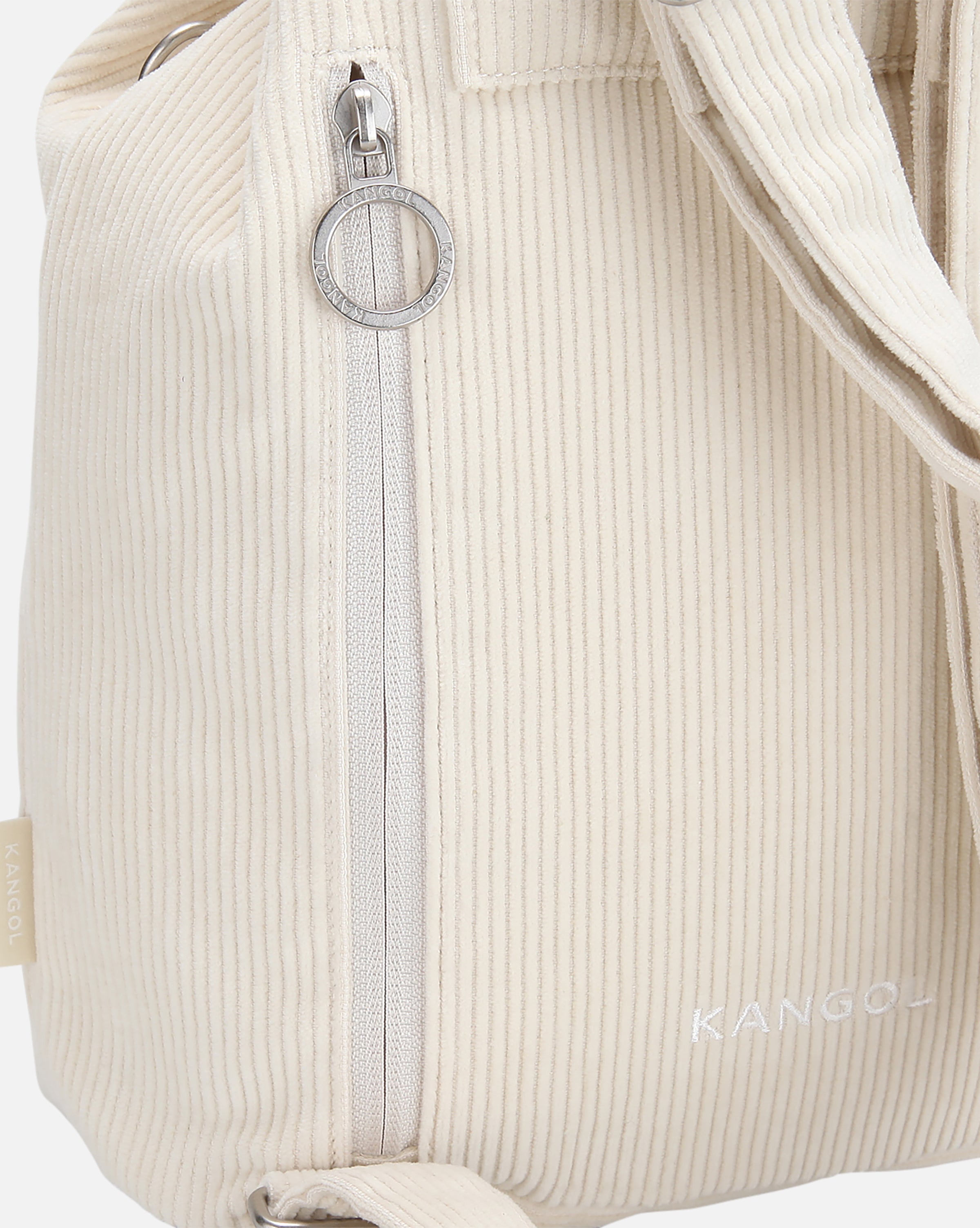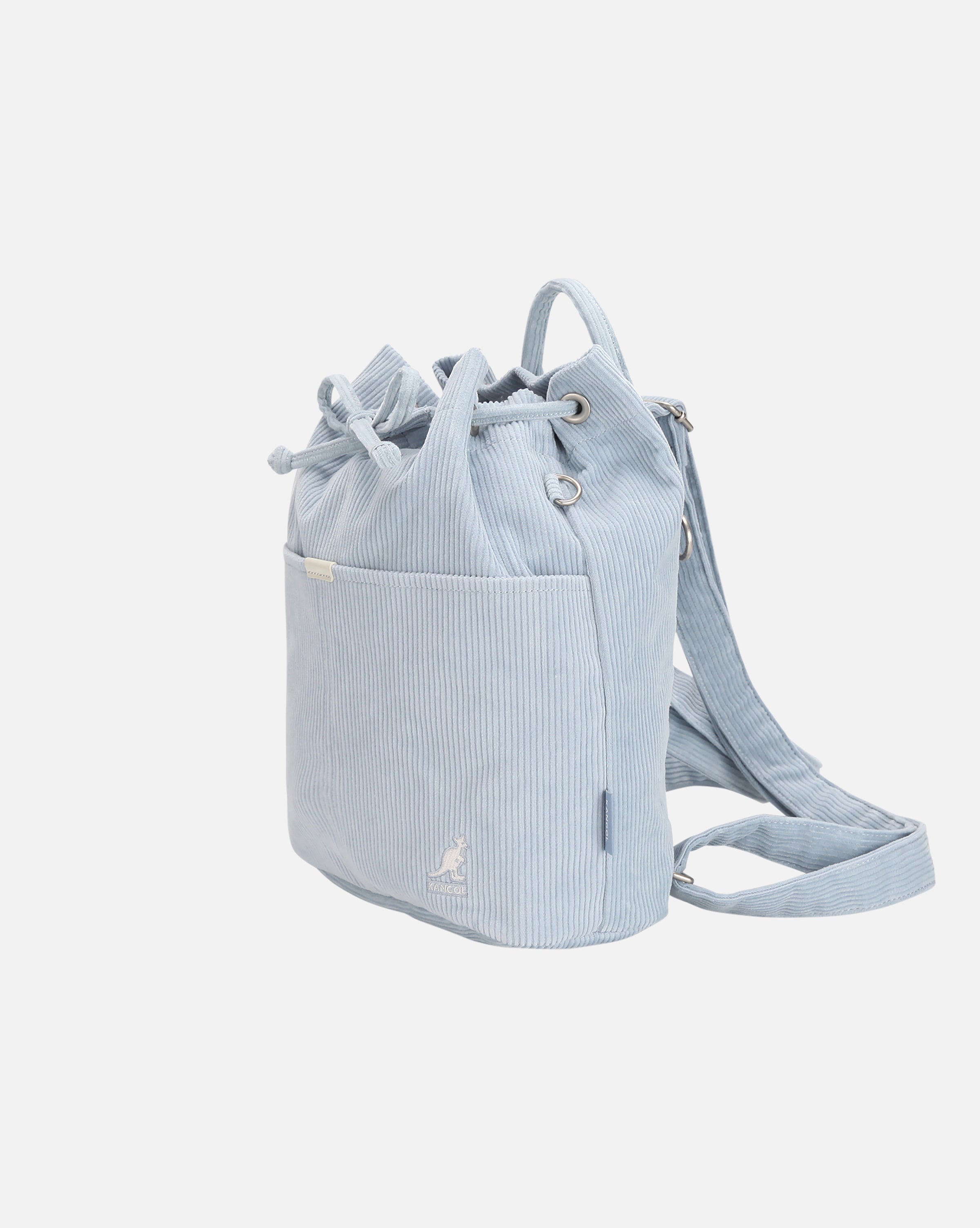 Mini backpack made with warm, soft corduroy fabric, perfect for a cozy fall season look. Features Kangaroo logo embroidery and a front pocket design with an easy-to-use drawstring closure. Multiple inner and outer compartments for storage.