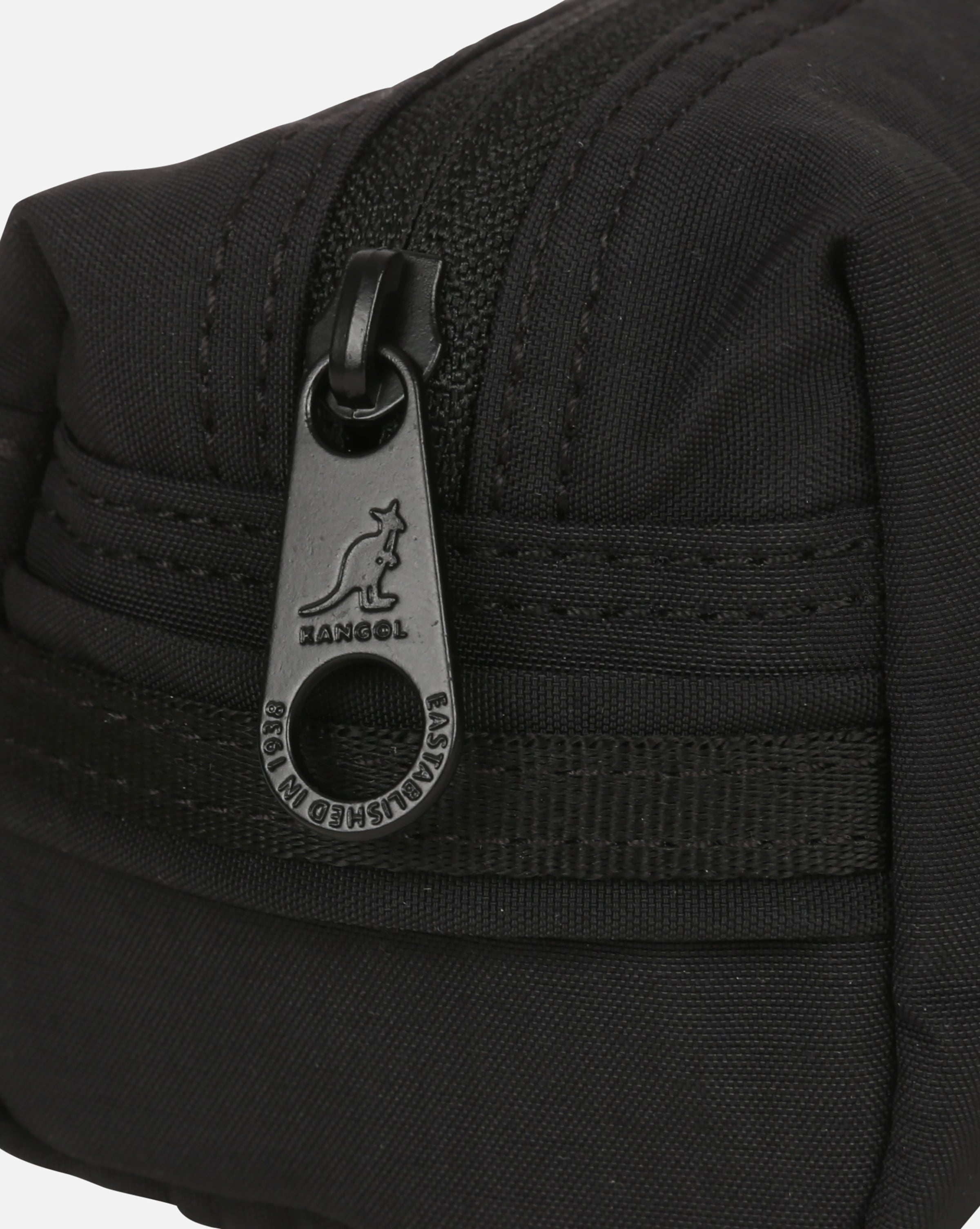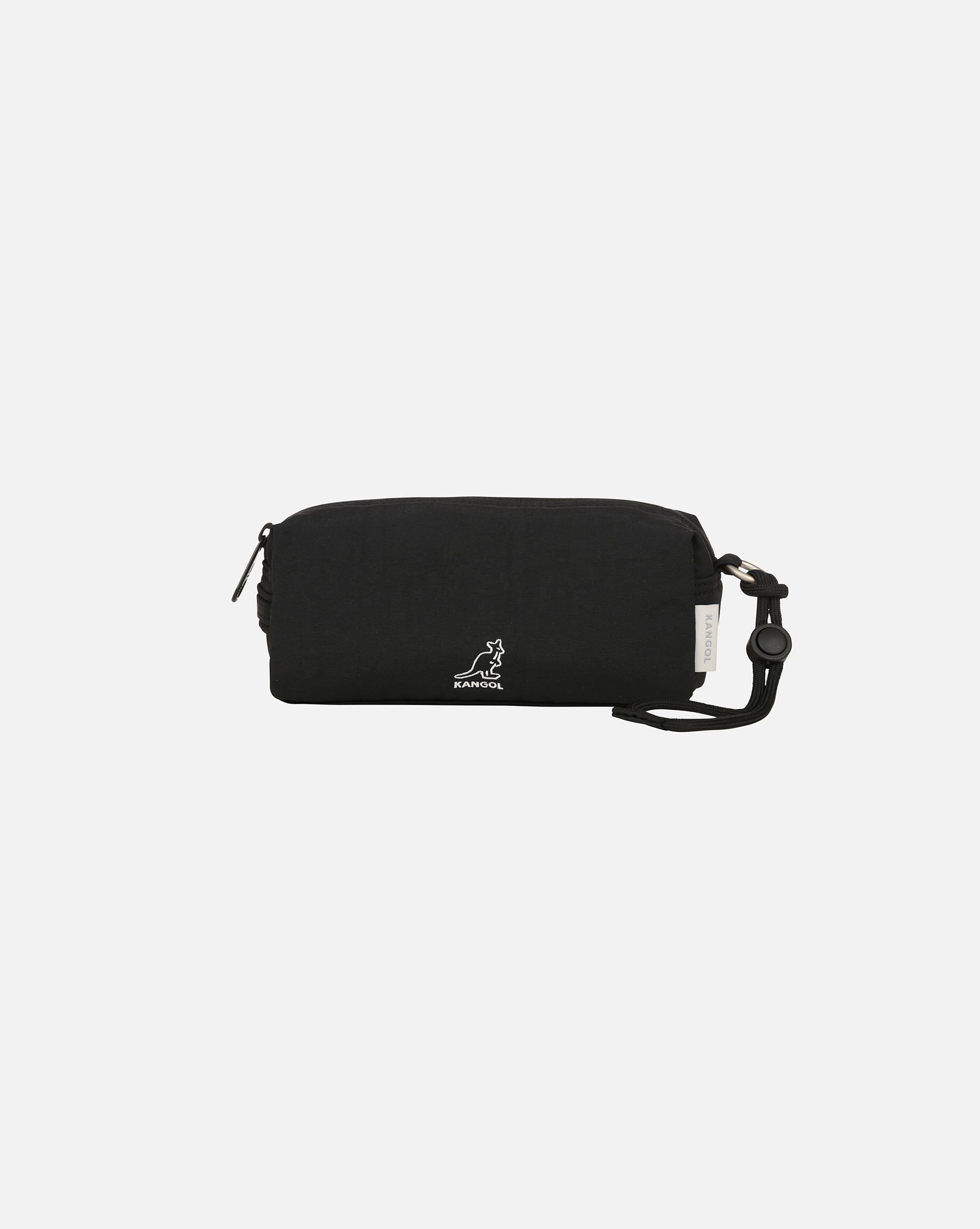 The Essential RC Pouch is made from a lightweight, recycled fabric that is eco-friendly and sustainable. It has a padded reinforcement on its exterior, and open pockets on the back as well as a strap for versatile usage. The Kangaroo logo is shown in the front of the pouch.