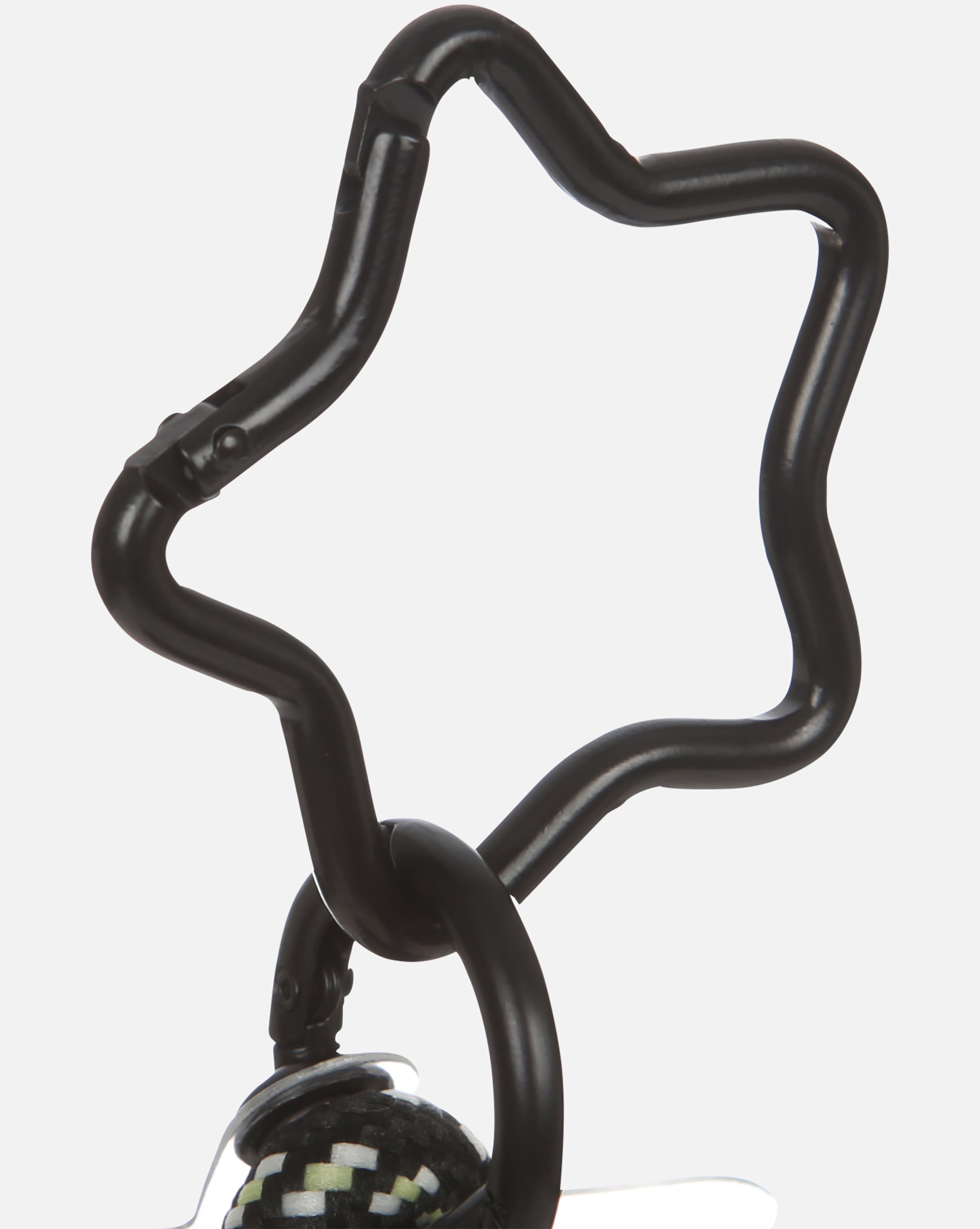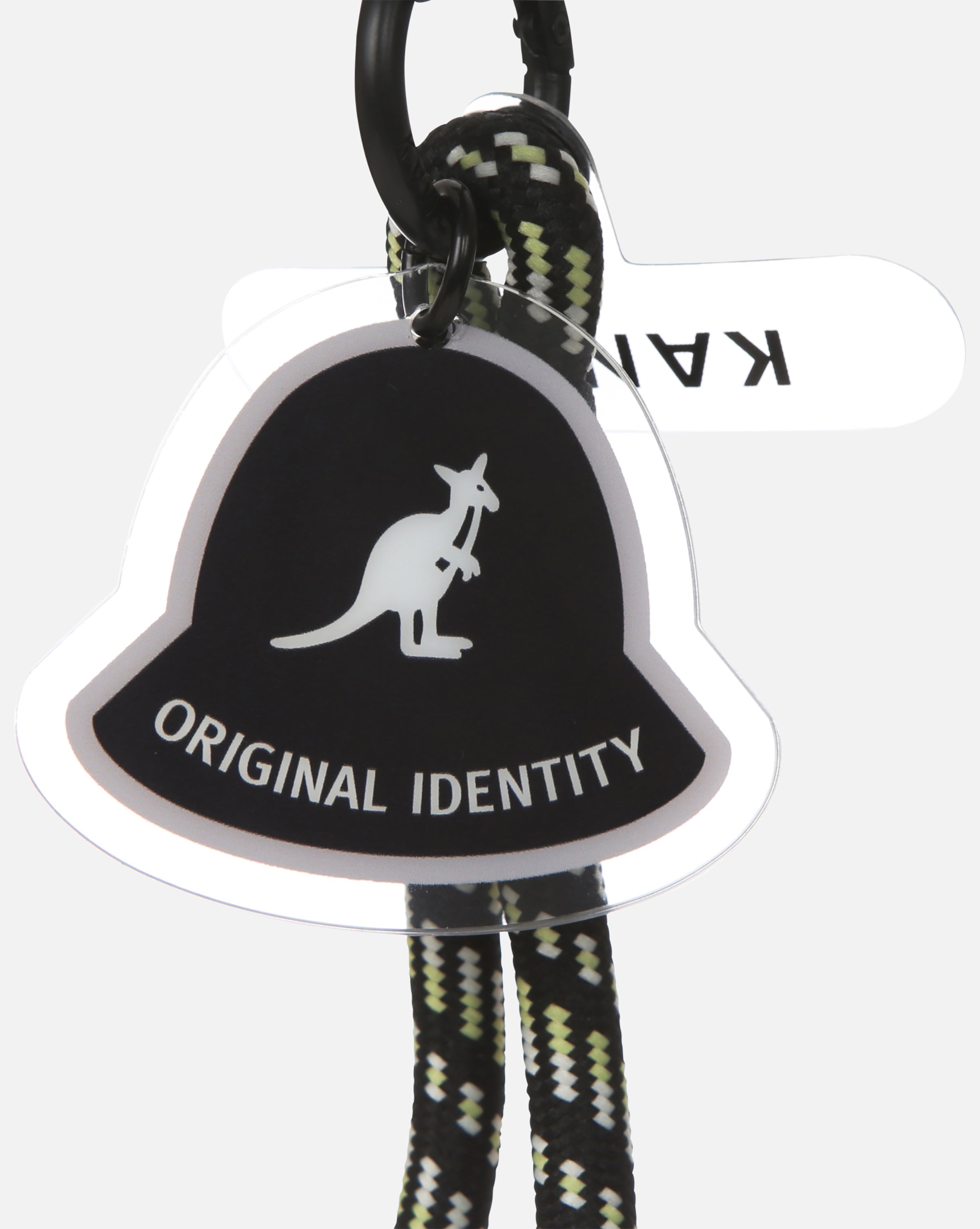 The Icon Kangol® Key Holder has a 3-tone loop and a metal decorative accent. The Icon key ring has a detachable O-ring, a star-shaped hook for versatility, and D-rings. Easy to attach to a bag or to something else.