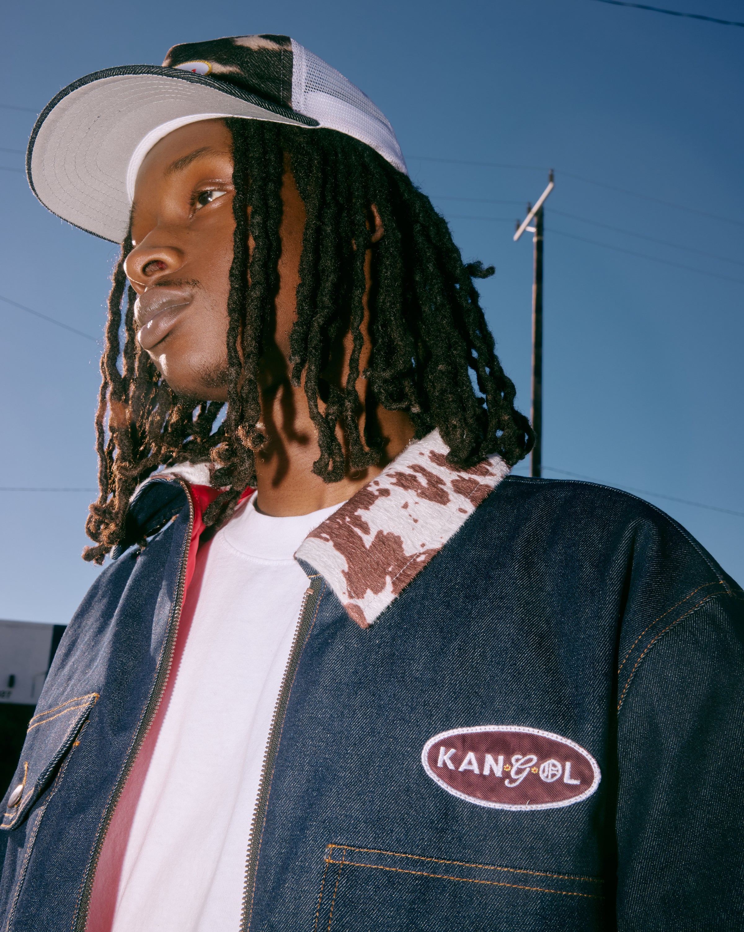 Constructed from premium denim and topped with a faux cowhide collar, the Kangol x NGO work jacket delivers a rugged, elevated take on a classic silhouette. A fully lined interior adds comfort and structure, while a custom lockup logo patch at the chest provides a clean, co-branded signature.
