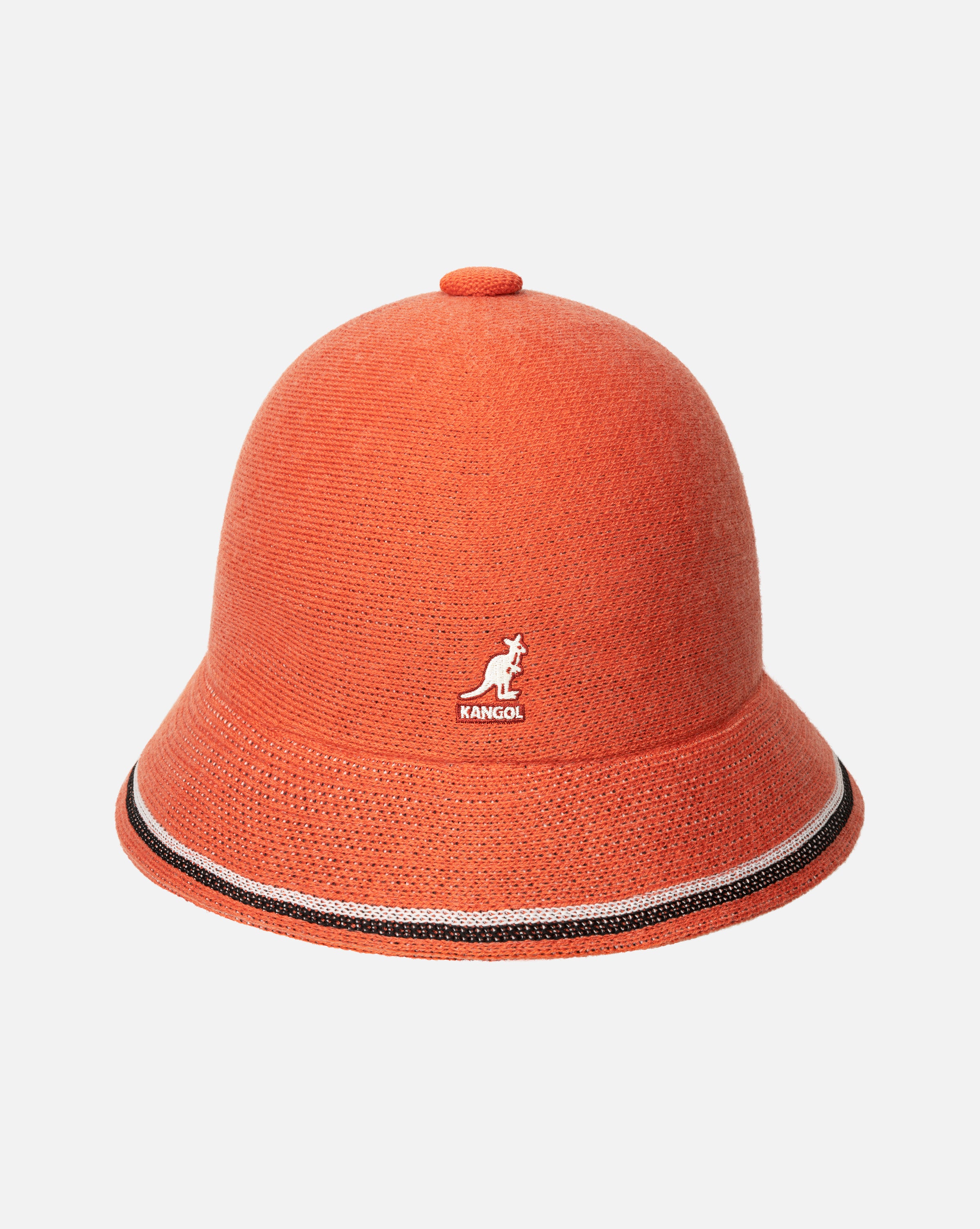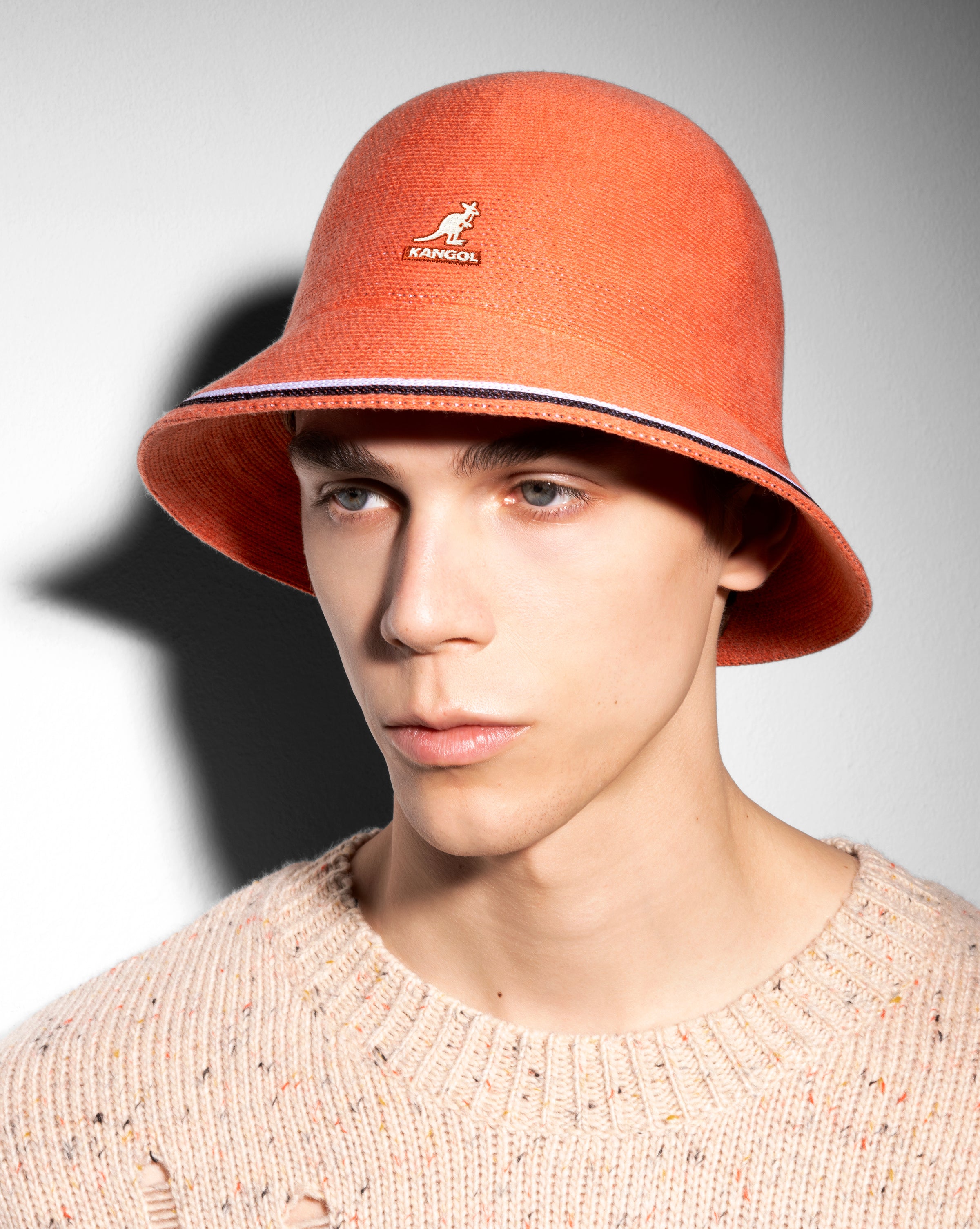 The Pop Stripe Casual uses our classic wool yarn as a base and is tipped at the brim edge with a dual-colored pop stripe that circles around the head. The stripes are knit into the hat using recycled polyester made from plastic bottles. It is finished with a matching Kangol™ kangaroo logo at the front.