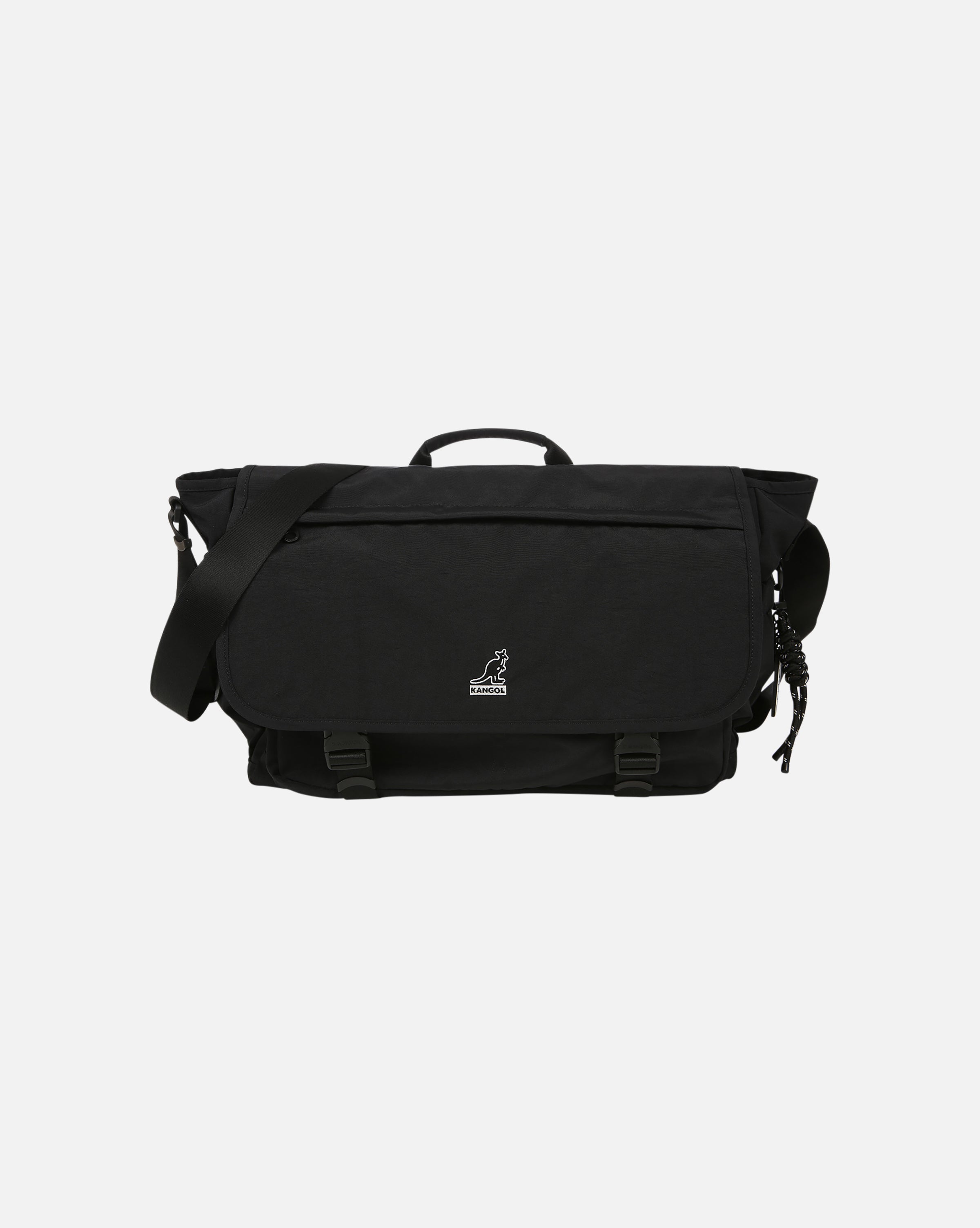 This messenger bag features a square front pocket and is made with lightweight, washable nylon fabric featuring a soft, matte finish. Embellished with an embroidered kangaroo symbol on the front. Includes a detachable Kangol pendant and 3M string keyring set as well as a side D-ring for attaching small accessories. Features air mesh shoulder pads for comfort and multiple inner and outer compartments for storage - Accommodates laptops up to 15 inches.