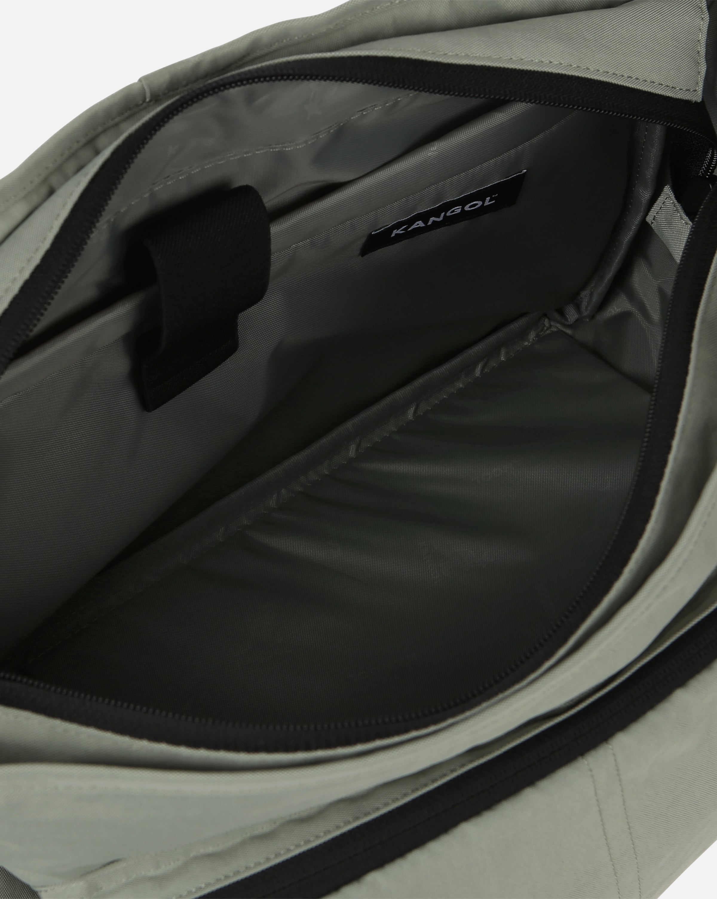 This messenger bag features a square front pocket and is made with lightweight, washable nylon fabric featuring a soft, matte finish. Embellished with an embroidered kangaroo symbol on the front. Includes a detachable Kangol pendant and 3M string keyring set as well as a side D-ring for attaching small accessories. Features air mesh shoulder pads for comfort and multiple inner and outer compartments for storage - Accommodates laptops up to 15 inches.
