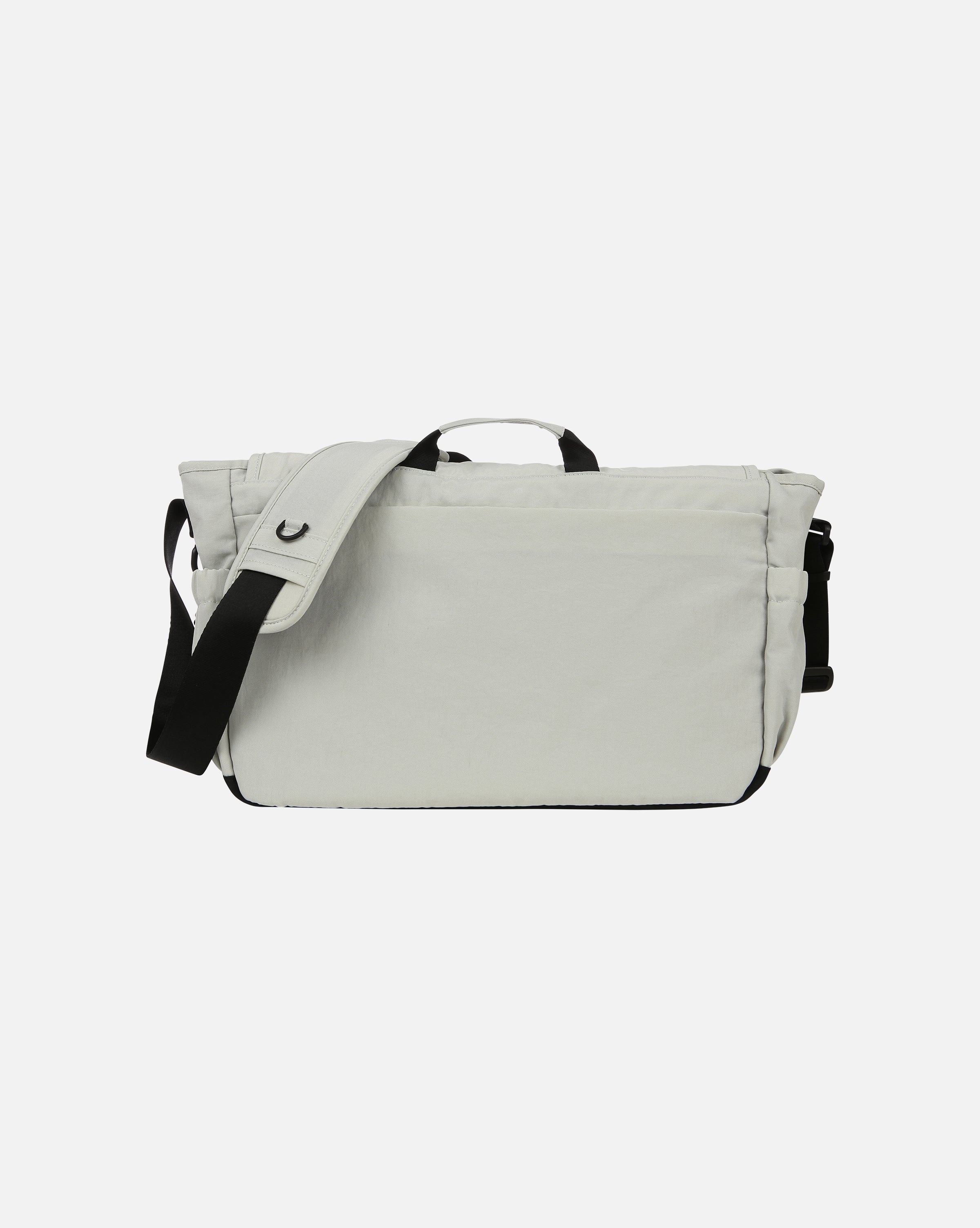 This messenger bag features a square front pocket and is made with lightweight, washable nylon fabric featuring a soft, matte finish. Embellished with an embroidered kangaroo symbol on the front. Includes a detachable Kangol pendant and 3M string keyring set as well as a side D-ring for attaching small accessories. Features air mesh shoulder pads for comfort and multiple inner and outer compartments for storage - Accommodates laptops up to 15 inches.