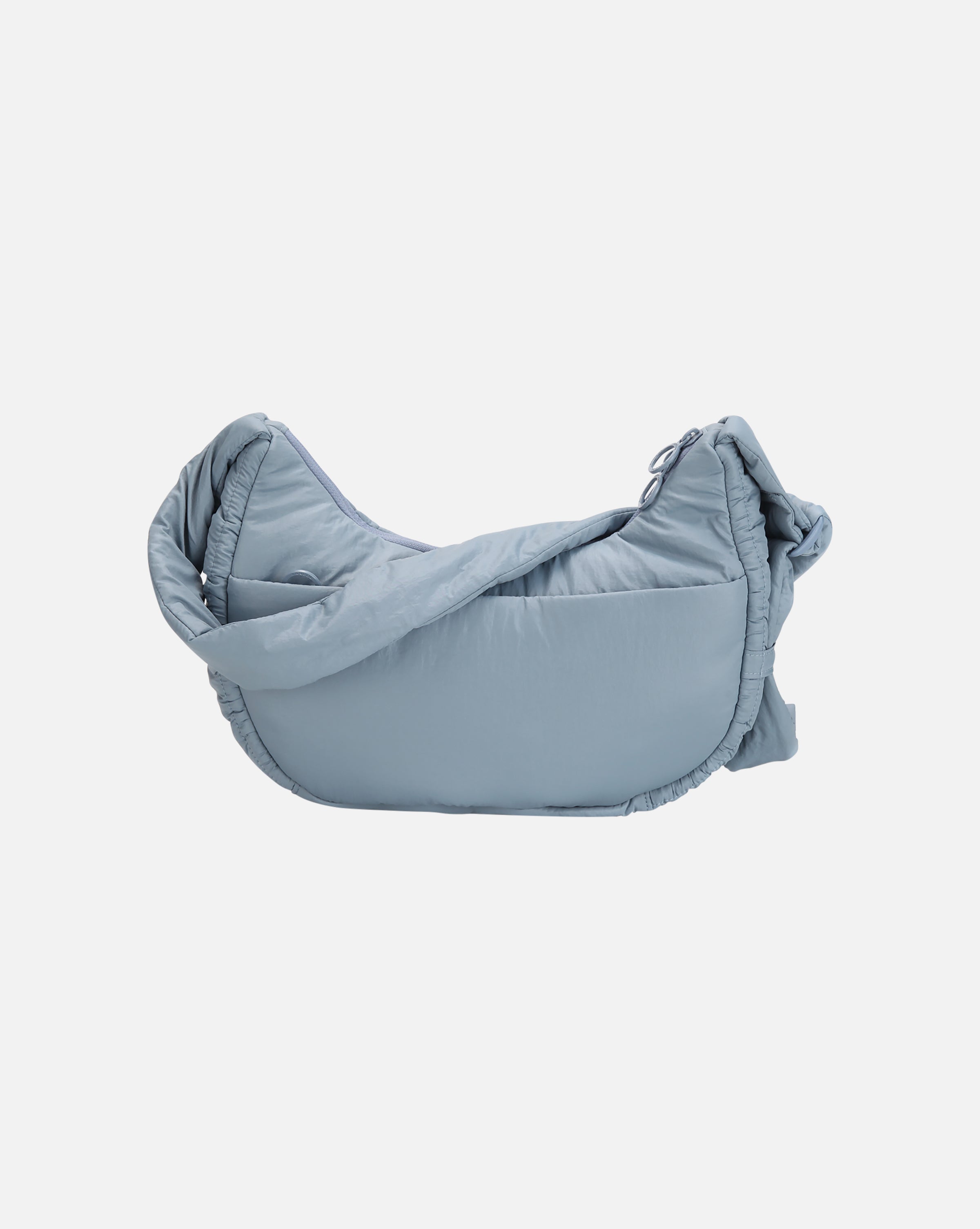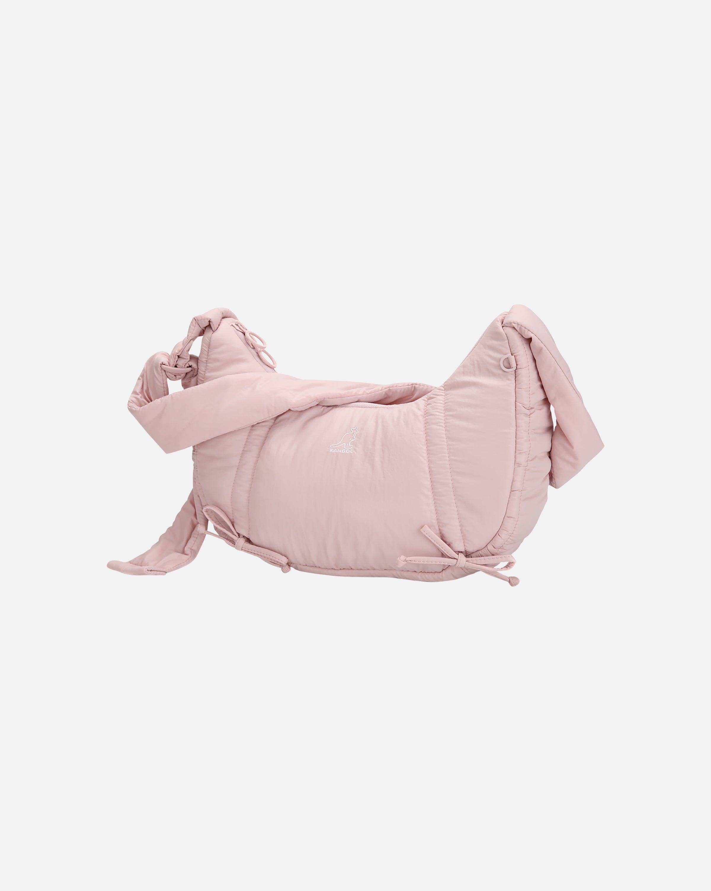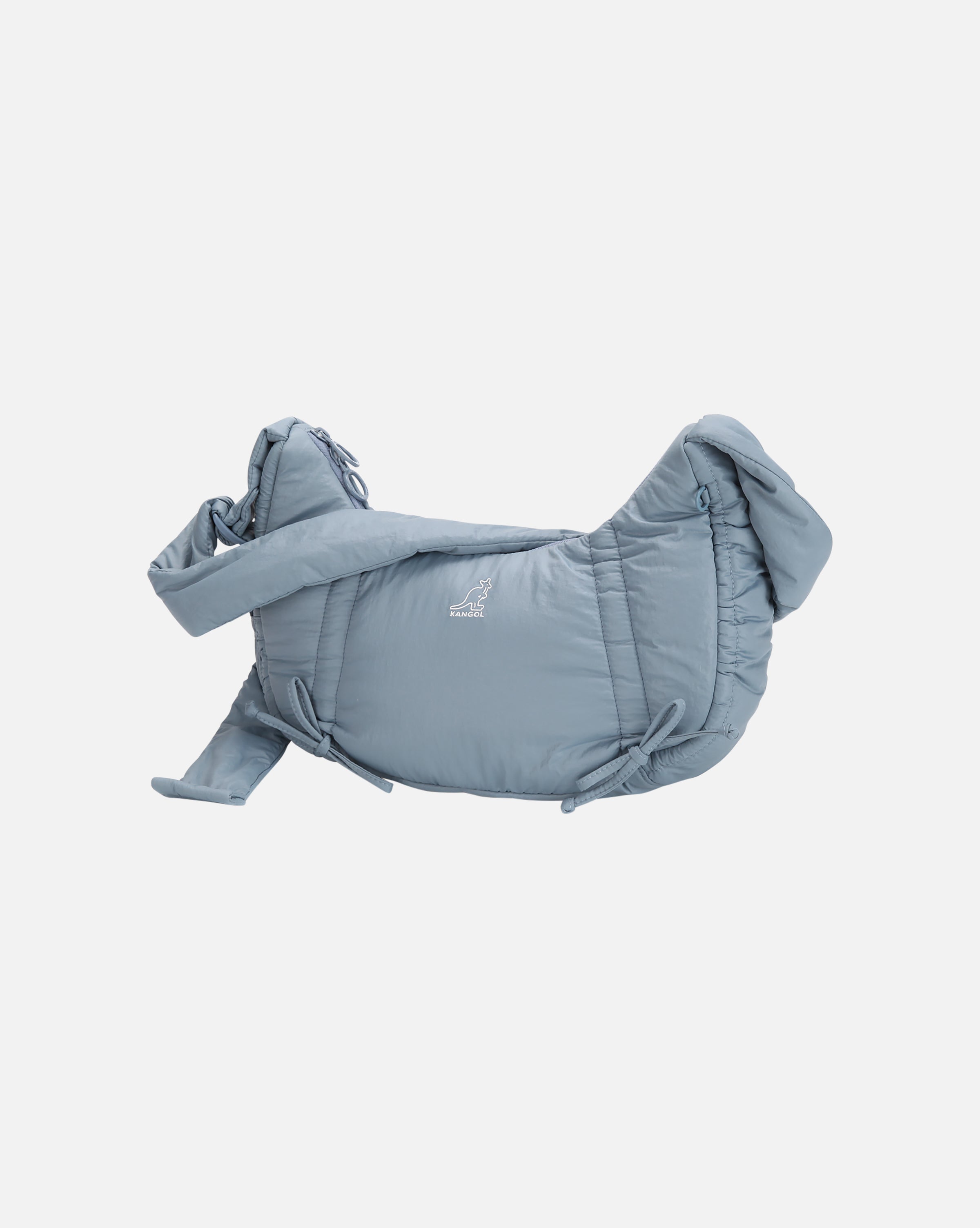 -This lightweight glossy hobo crossbody bag is made from soft-touch fabric which offers a puffy silhouette. Features Kangol symbol embroidery on the front and KANGOL logo embroidery on the back. Two vertical ribbons at the front adjust the width for versatile shaping and styling. Inner pocket provides convenient storage.